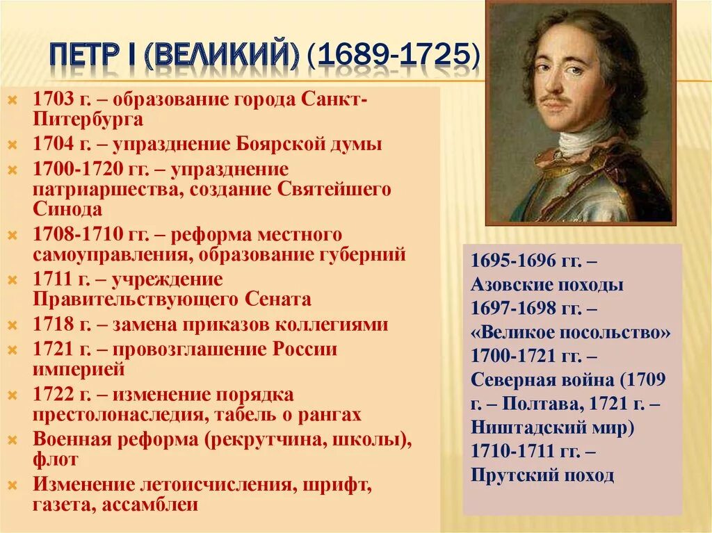 Правление Петра 1 годы правления 1689-1725.