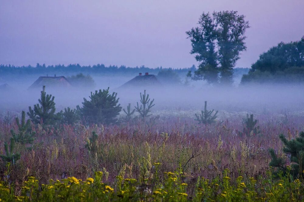 Утренний туман в деревне.