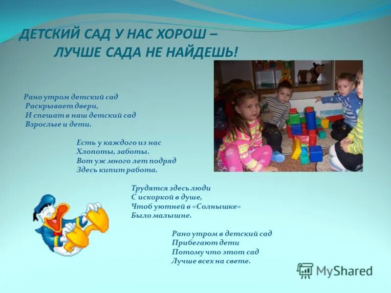 В детском саду утром встречаем детей.