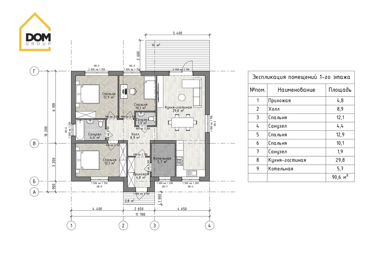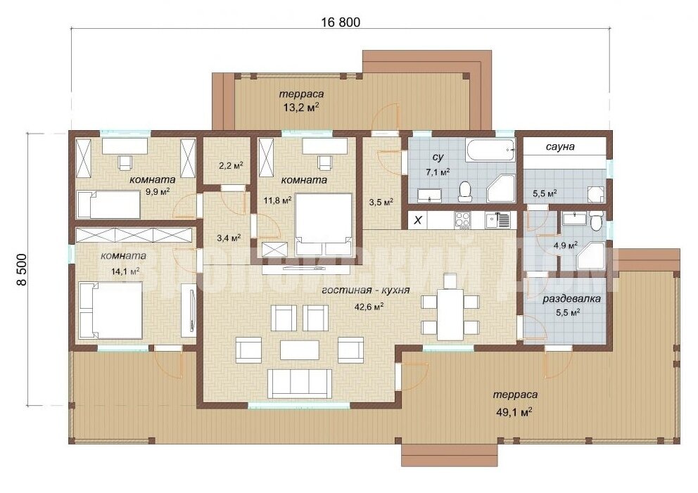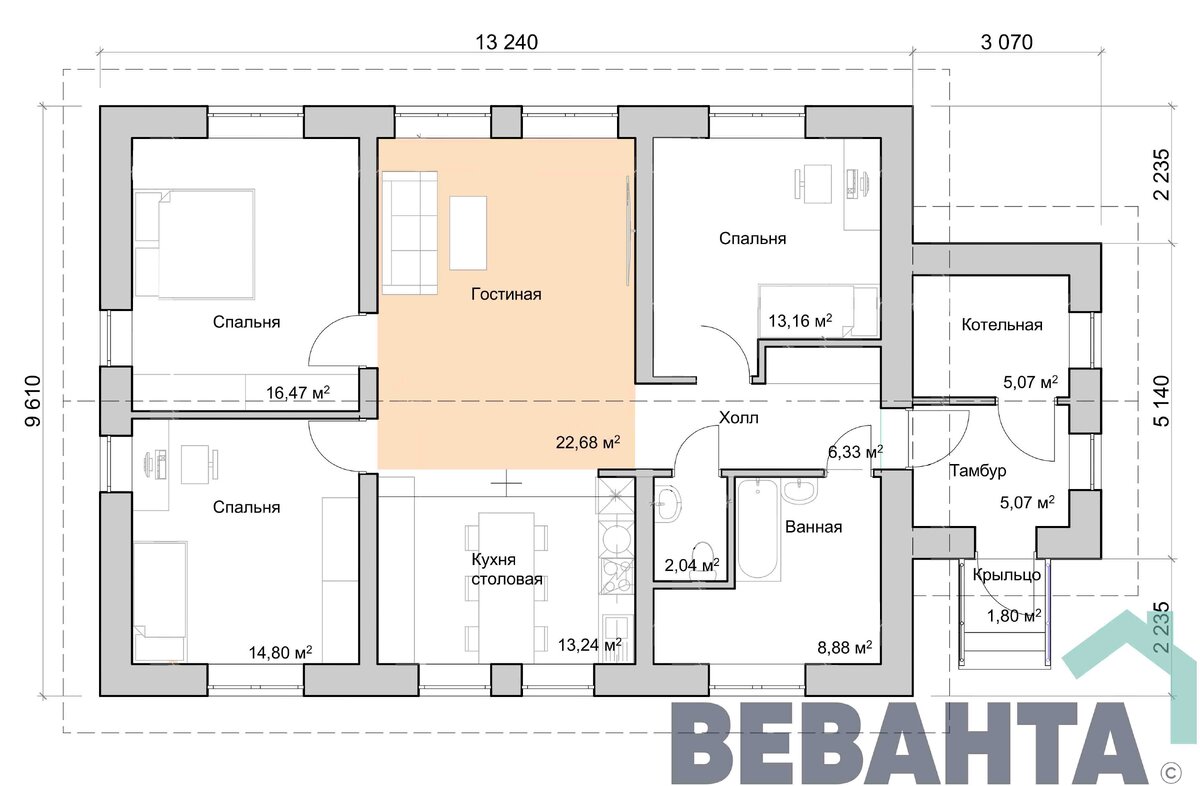 План одноэтажного дома с 3 спальнями и кухней гостиной 100 кв м ФОТОБАНК картинок и фотографий ДомКартинок. Более 1000000 качественных изображений безопасных для загрузки и скачивания.