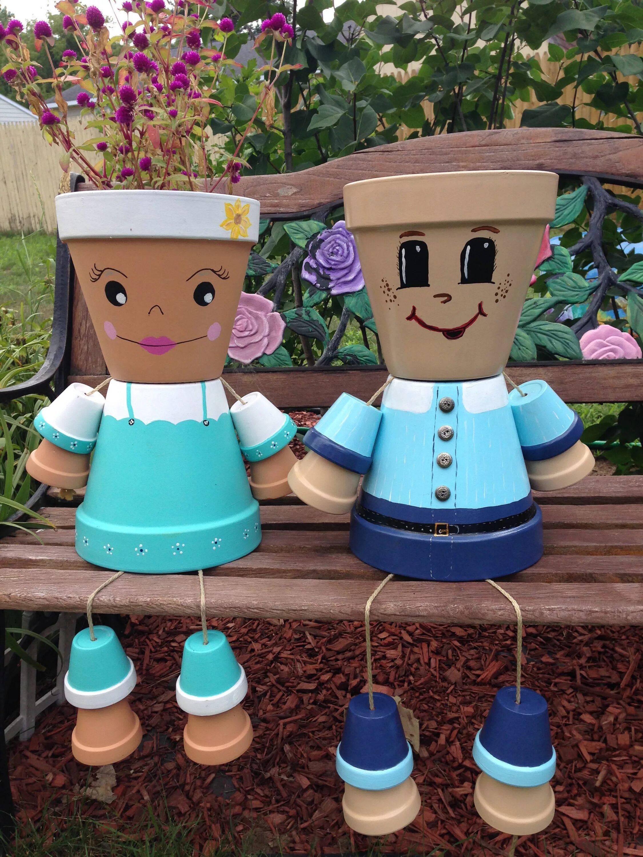 Человечки из горшков для дачи.