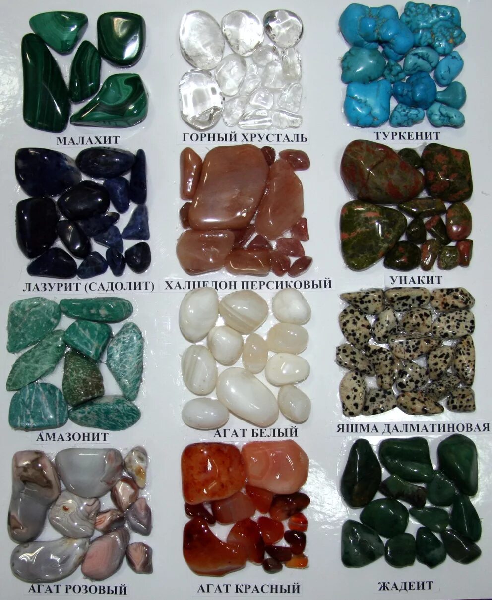 Агат, Оникс, опал, турмалин, хризопраз.