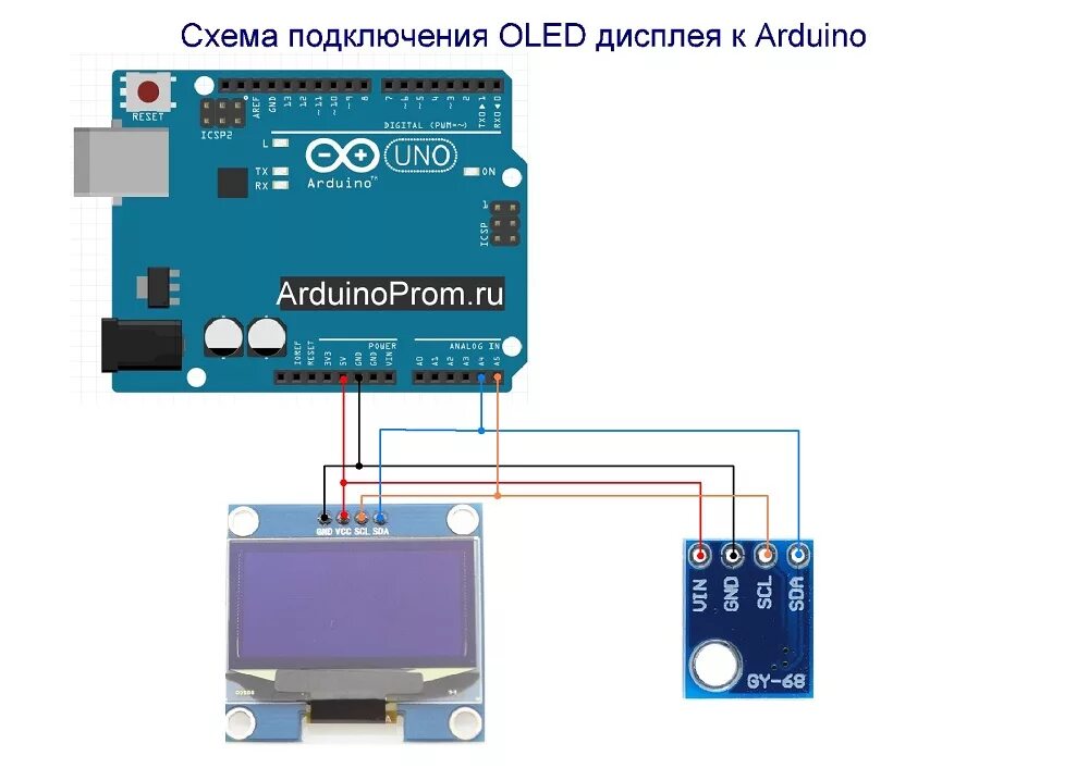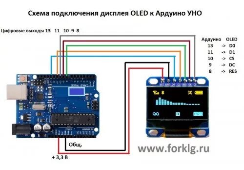 Схема подключения OLED дисплея к ардуино.
