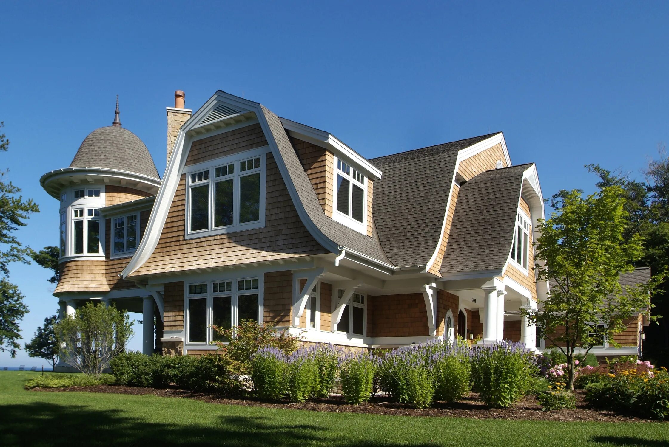Дом с мансардной крышей в классическом стиле.