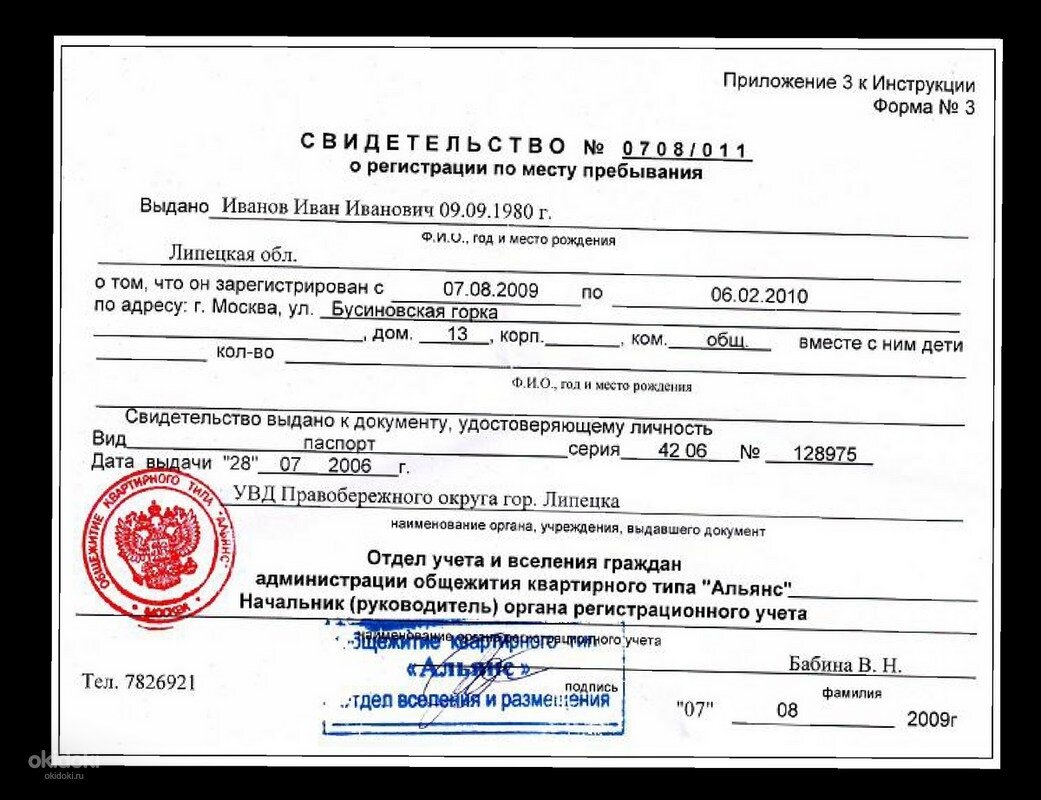 Свидетельство о регистрации по месту пребывания.