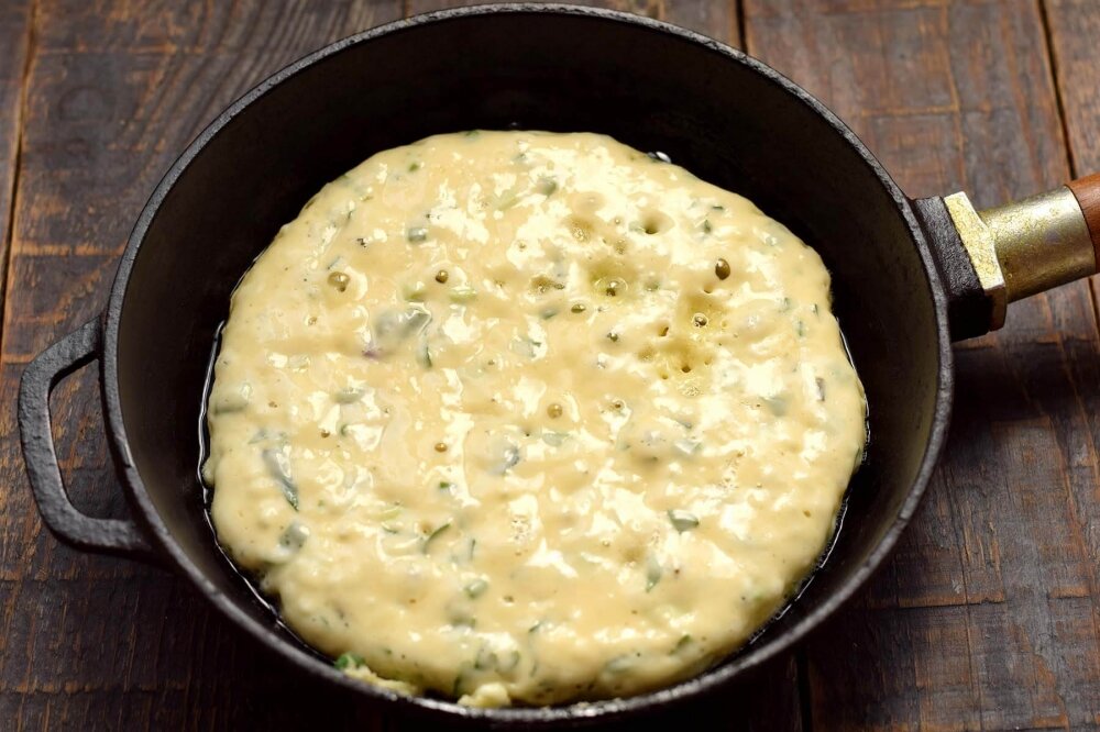 Пирог с творогом на сковороде.