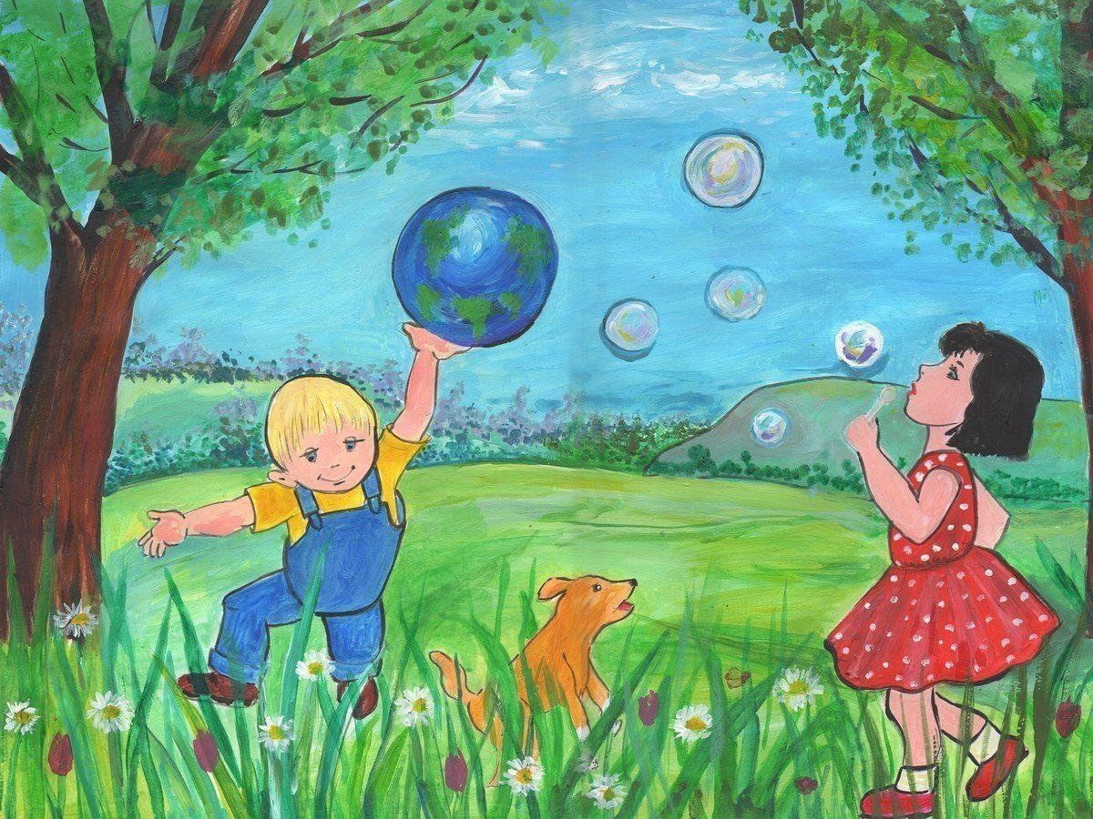 Дети в садике рисунок.