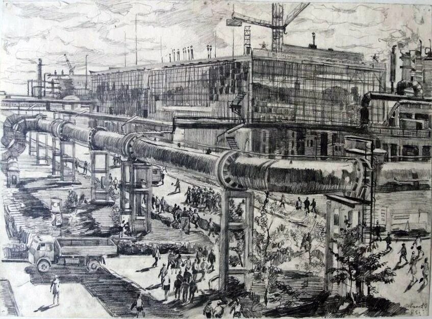 Промышленный пейзаж рисунок.