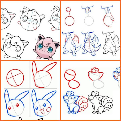 Поэтапное рисование покемонов.