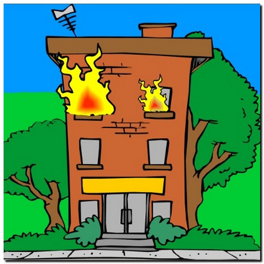 Дом горит рисунок.