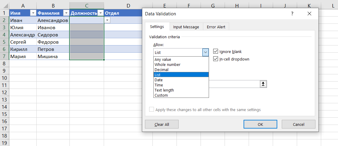 Функция выпадающий список в excel.