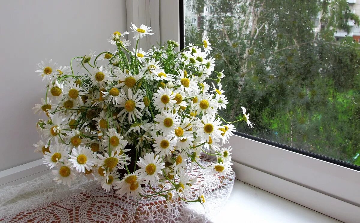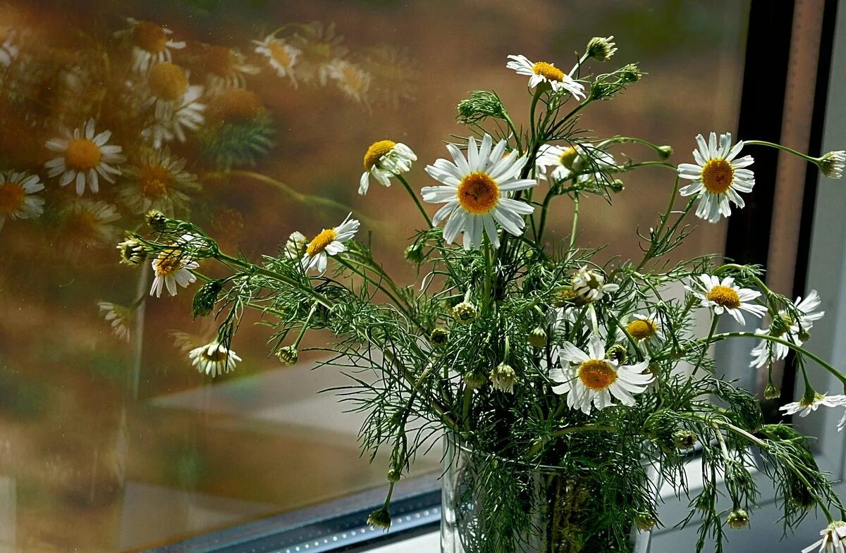 Ромашки на подоконнике.