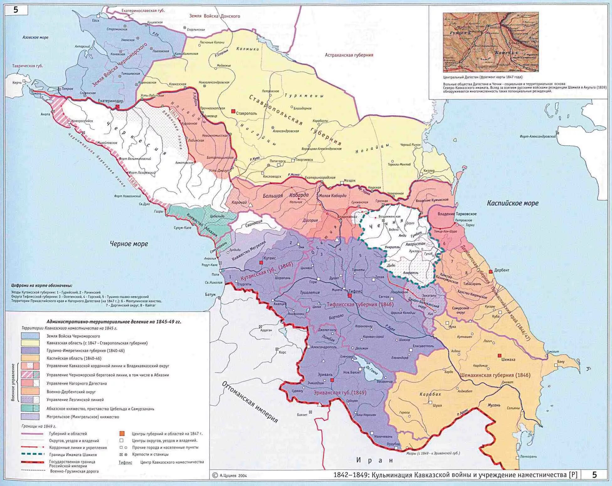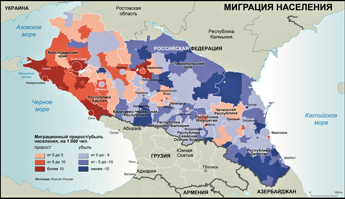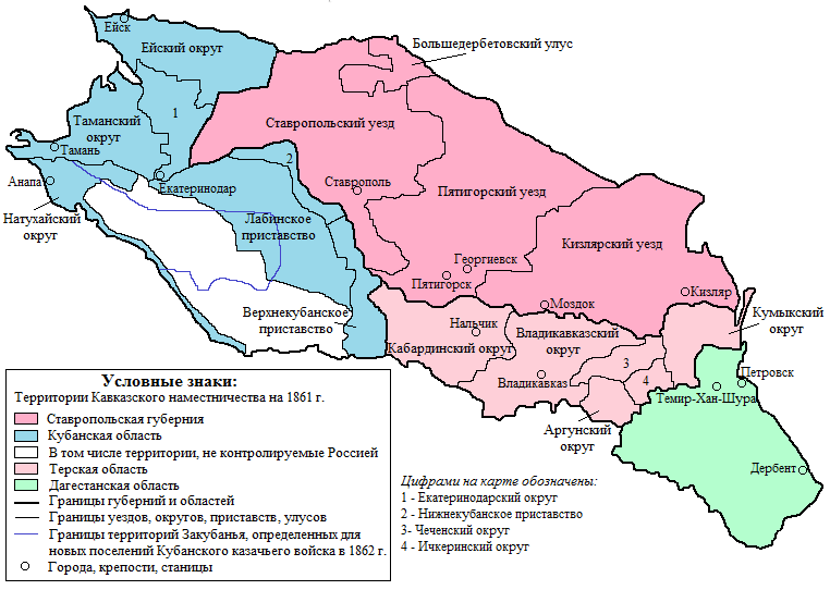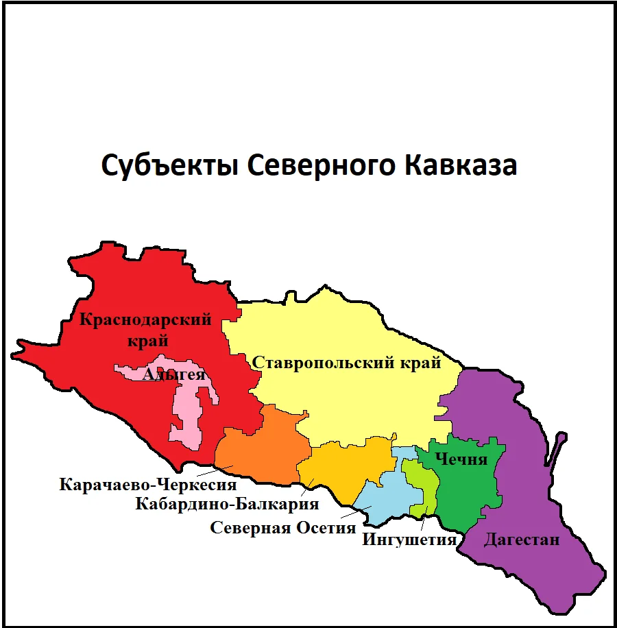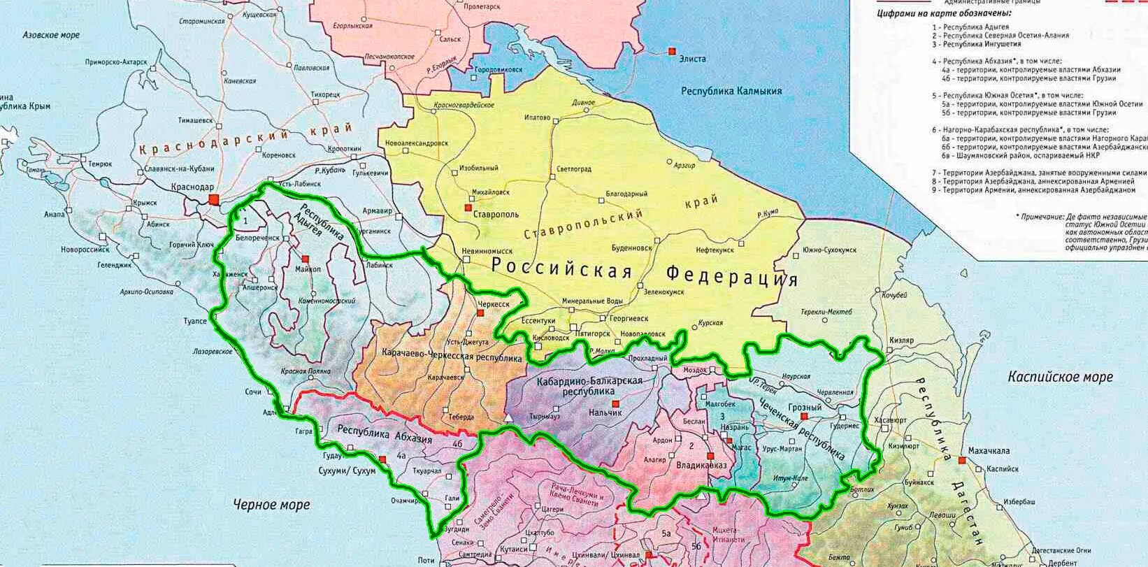 Административная карта Северного Кавказа.