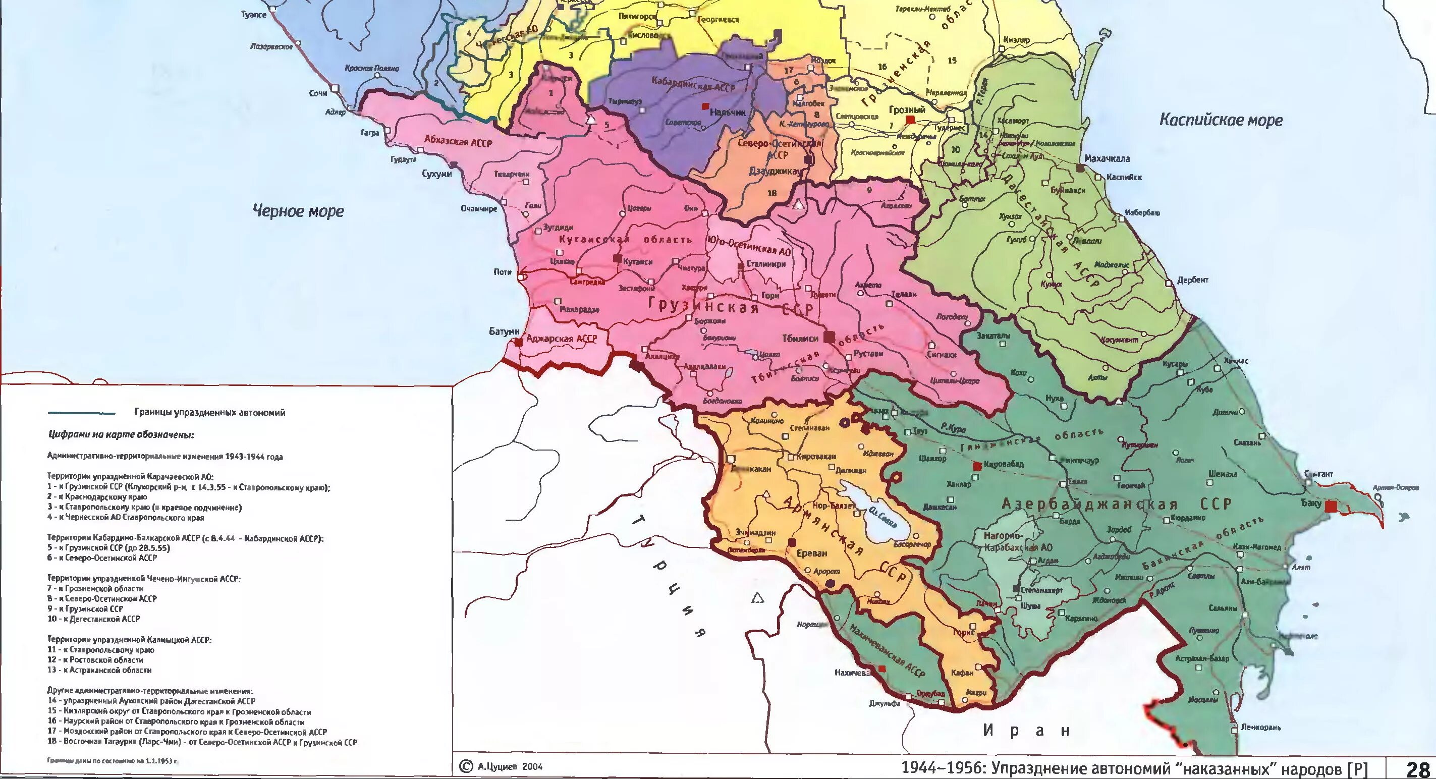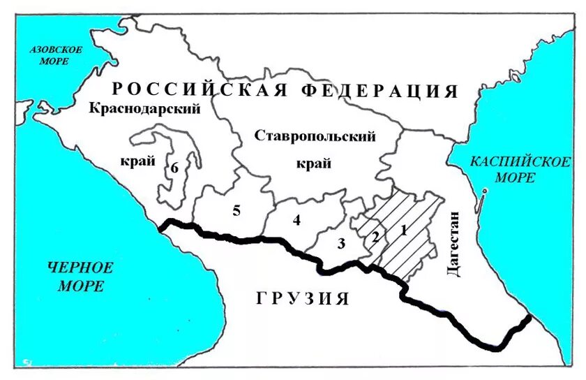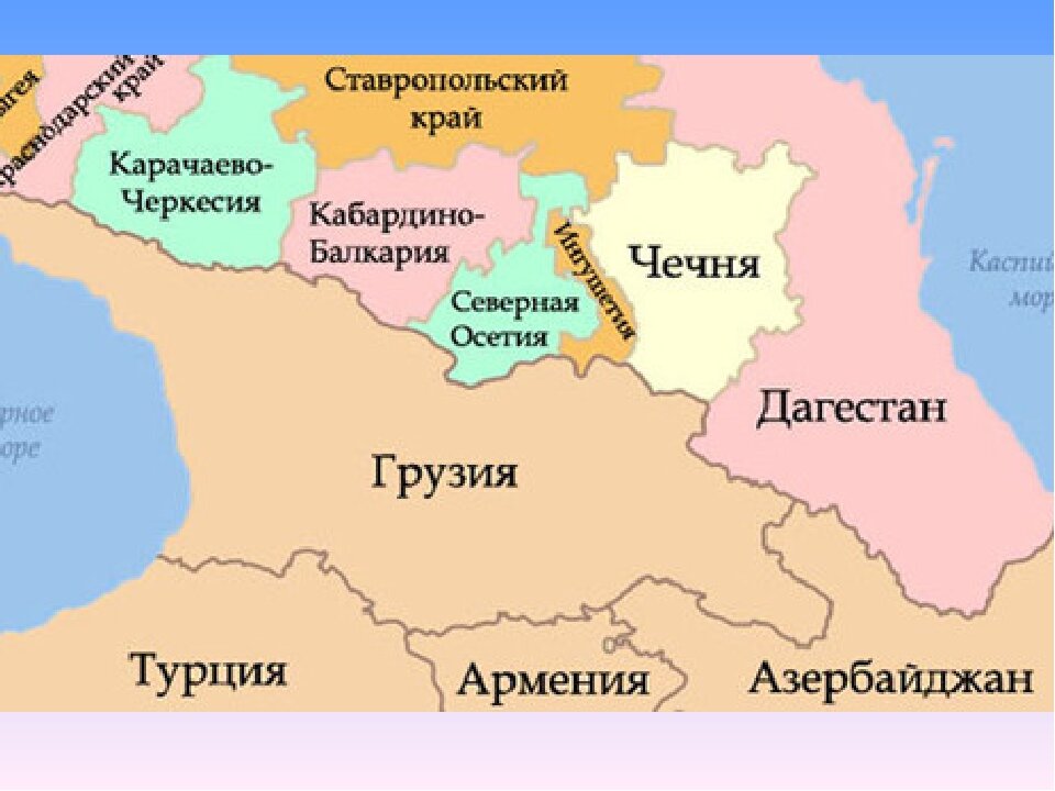 Политическая карта Северного Кавказа.