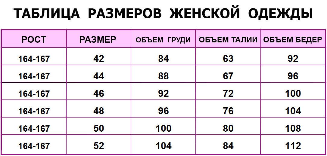 Размерная сетка женской одежды s 42 m 44 l 46.