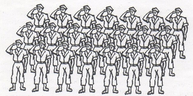 Рисуем солдаты в строю.