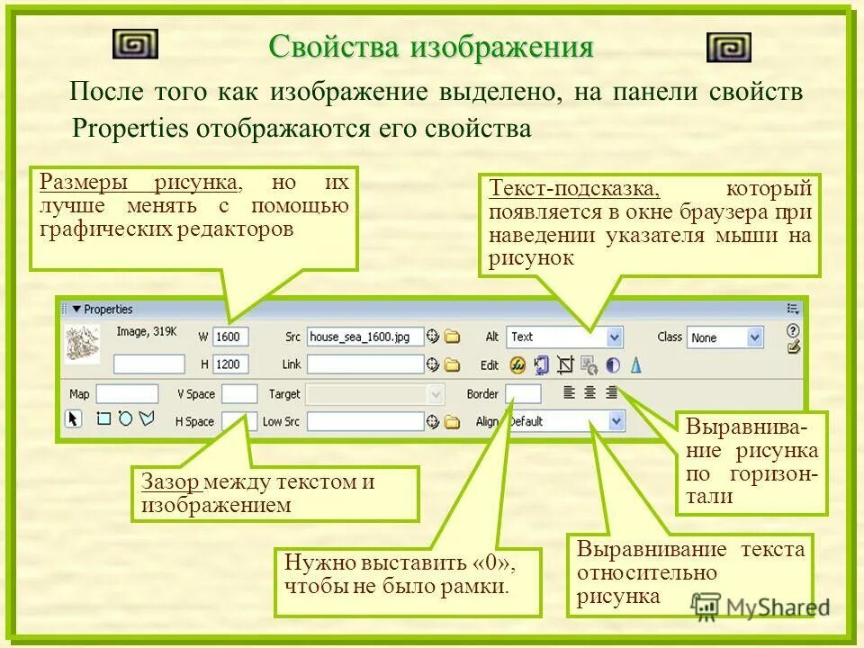 Свойства изображения.