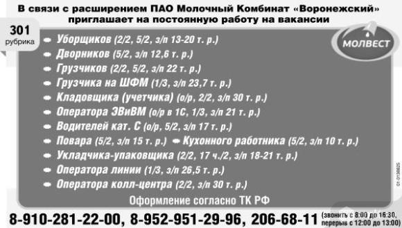 Телефоны вакансии отдела кадров.