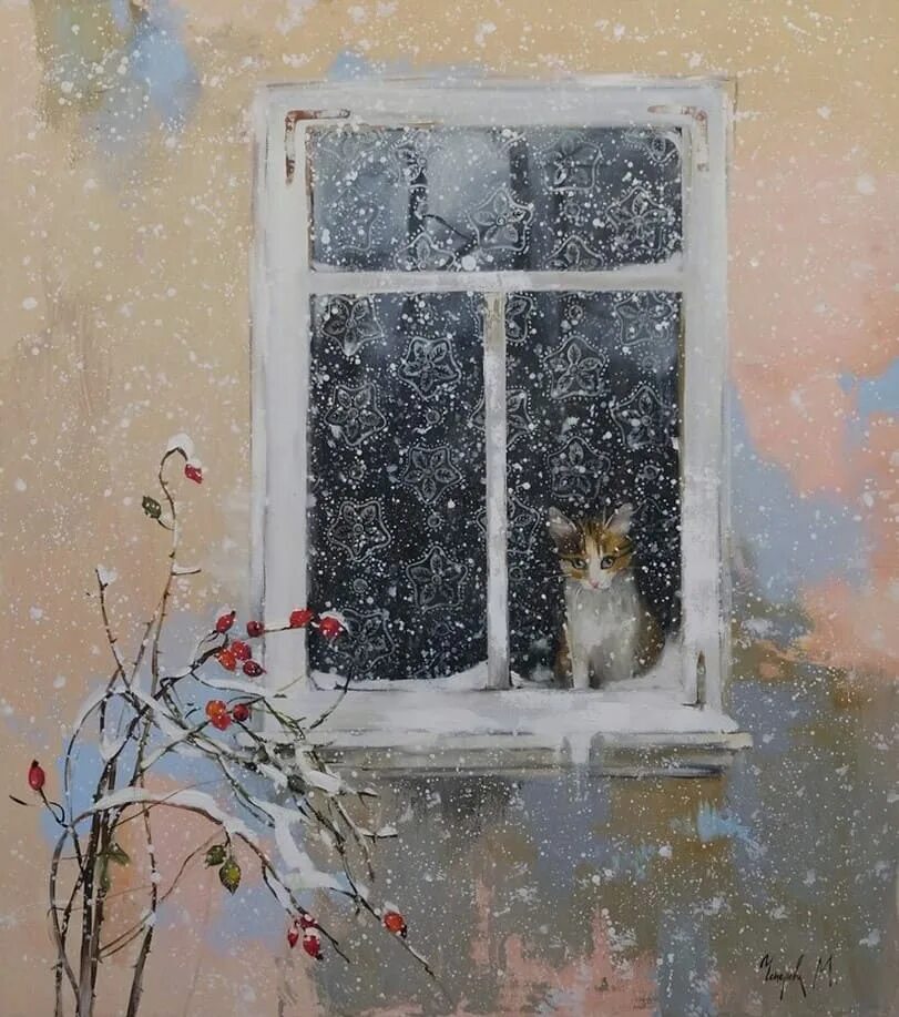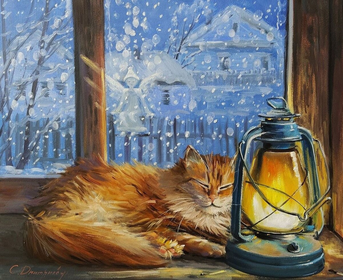Зимние коты в живописи.