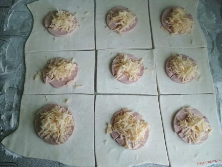 Слойки с колбасой и сыром.