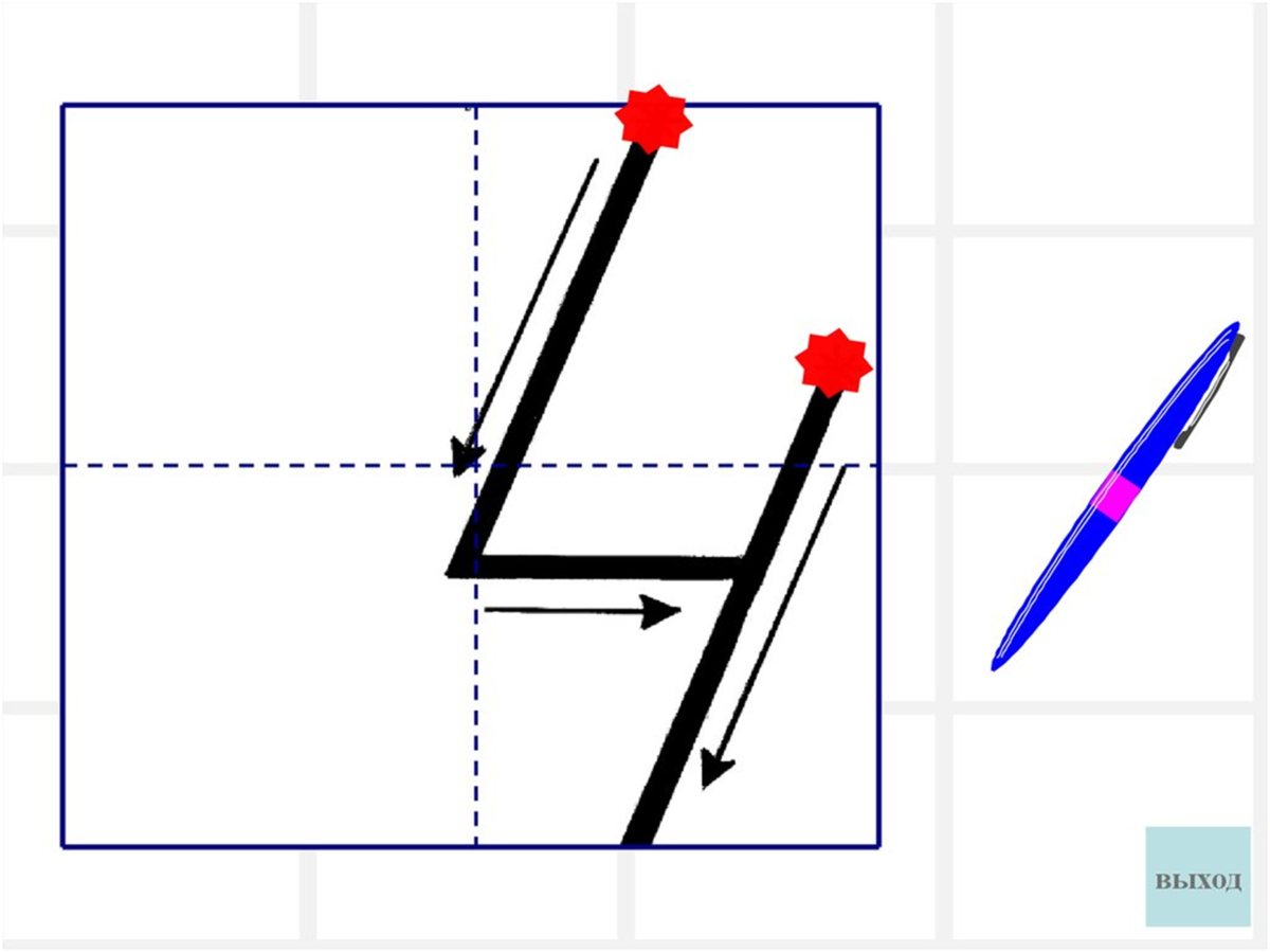 Показ написания цифры 4.