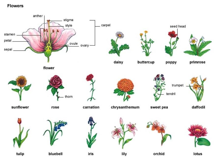Виды цветов.