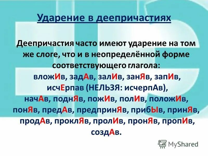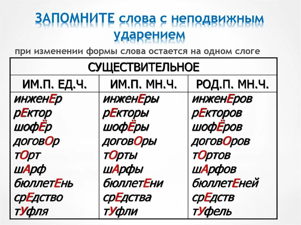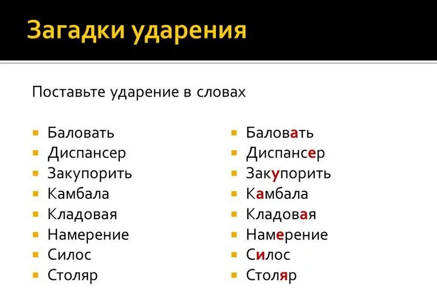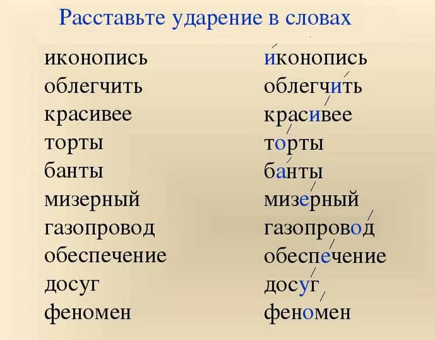 Правильное ударение в словах русского языка.