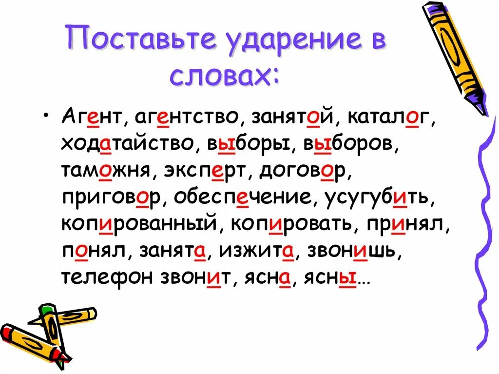 Правильная постановка ударения в словах.