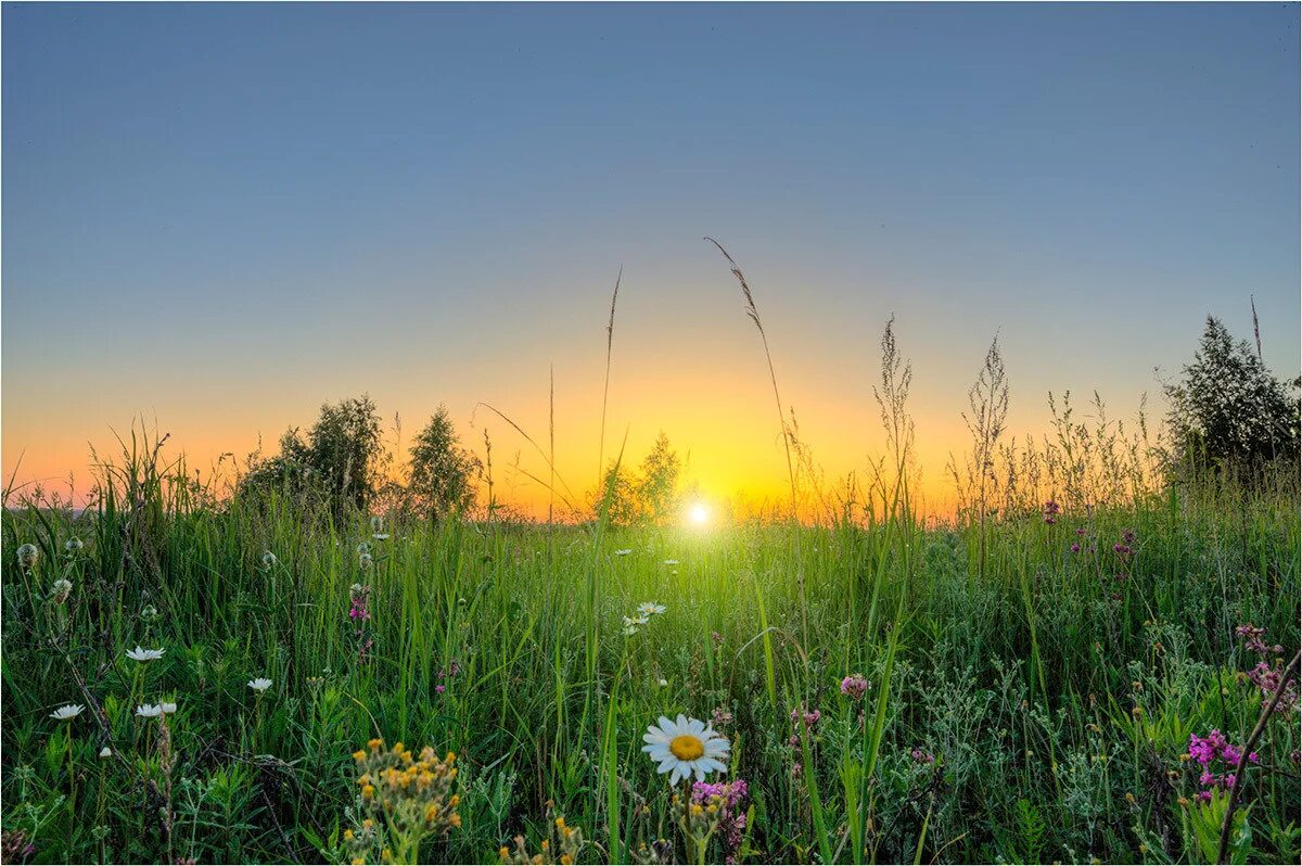 Рассвет в поле.