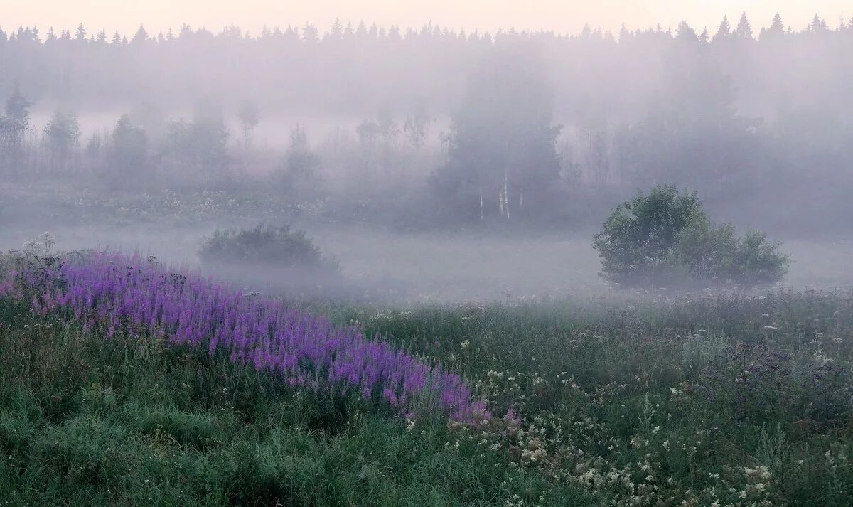 Над травою поднялся туман.