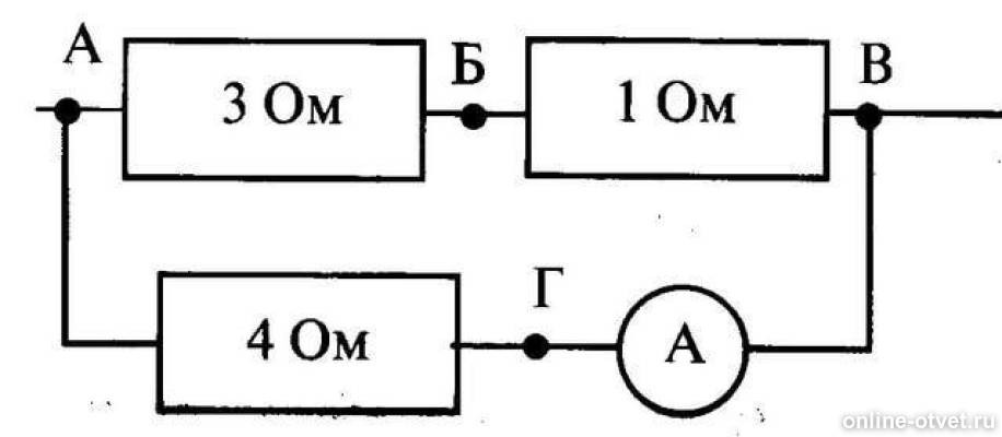 В цепи изображенной на рисунке амперметр показывает силу тока 2 а.