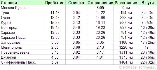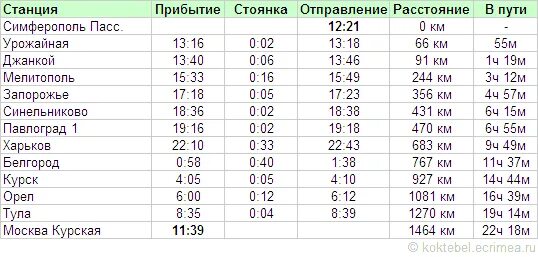 Расписание железнодорожных поездов.