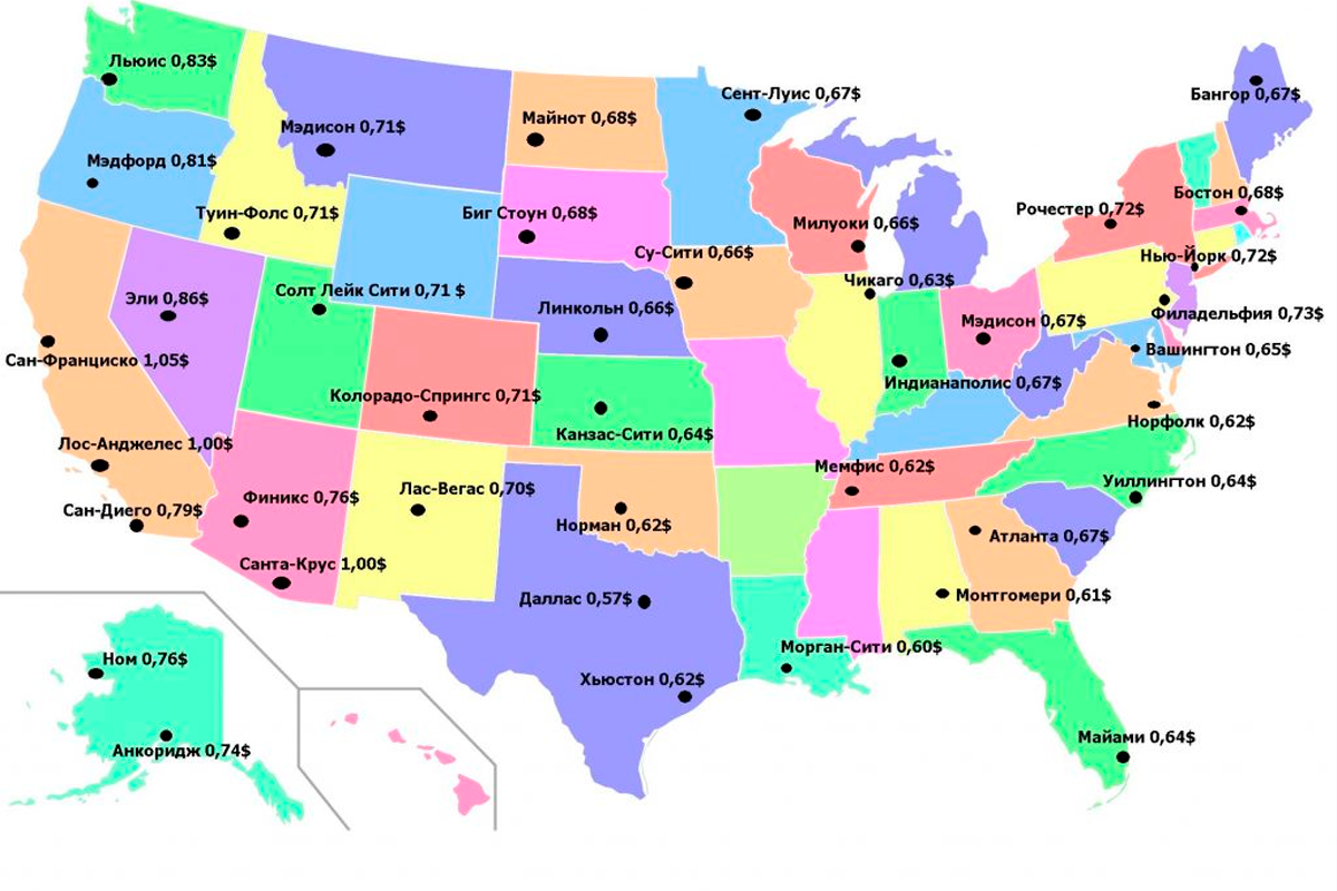 50 Штатов США на карте.