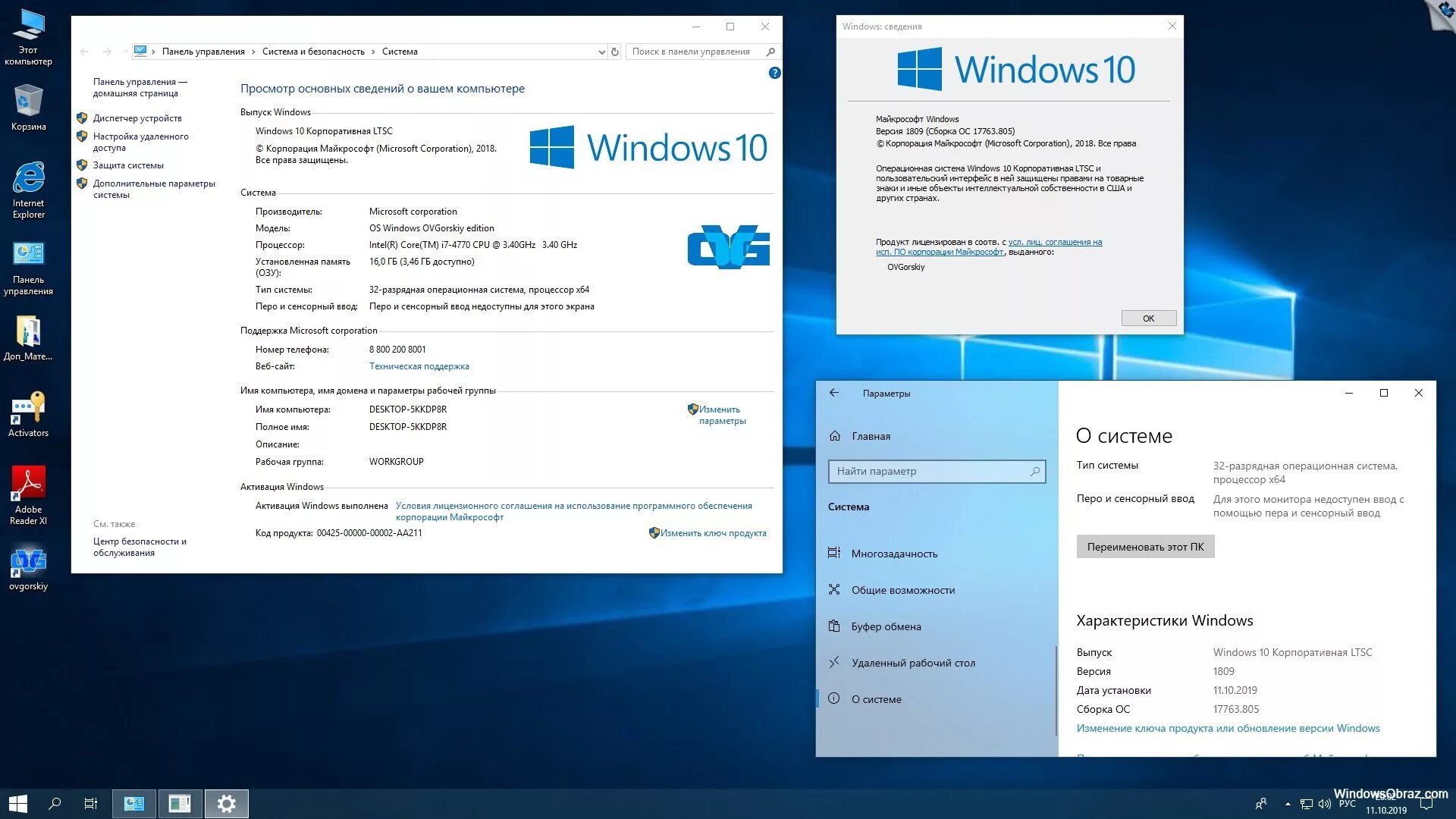 Windows 10 Pro Интерфейс.
