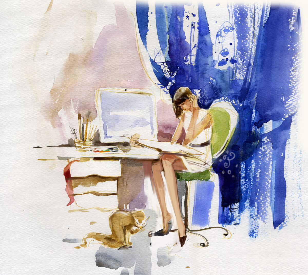 Я рисую я тебя рисую сидя.