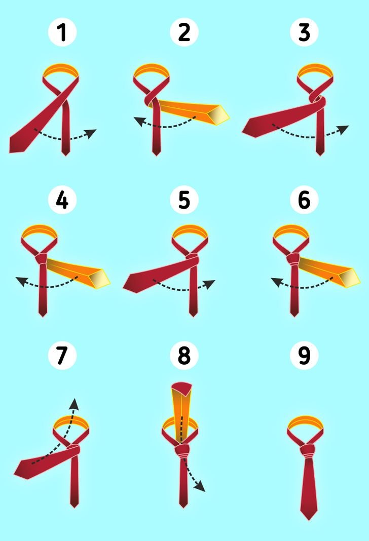 Пошаговая схема завязывания галстука.