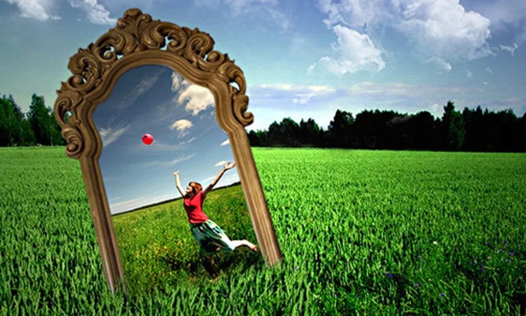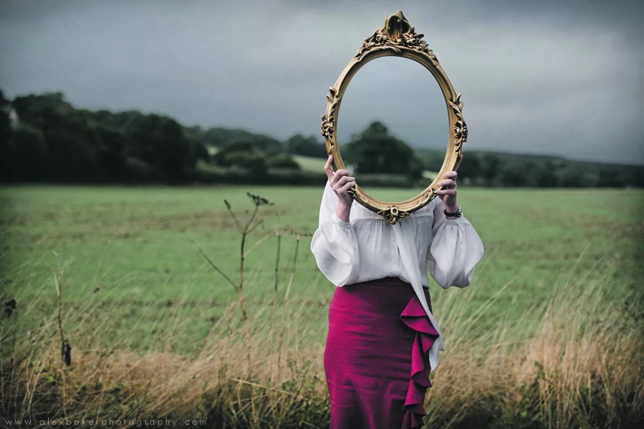 Фотосессия с зеркалом в поле.